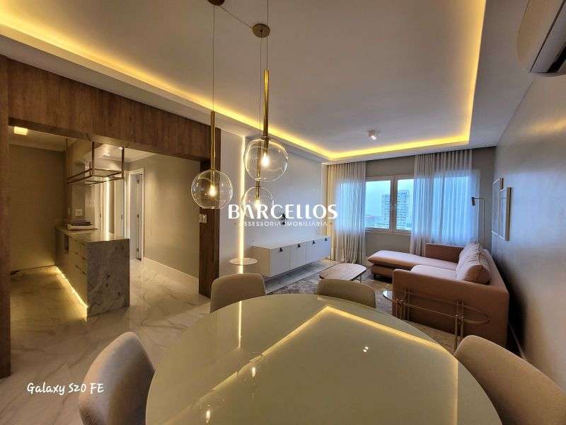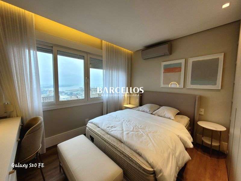 BARCELLOS MAIS VENDE - APARTAMENTO FINAMENTE DECORADO, todo reformado, arejado, com ótima iluminação natural, no 17° andar, com vista permanente para o Guaíba, com 68m² de área privativa, mobiliado, com 2 dormitórios sendo uma suíte, living para 2 ambientes, cozinha estilo americana e um banheiro social.